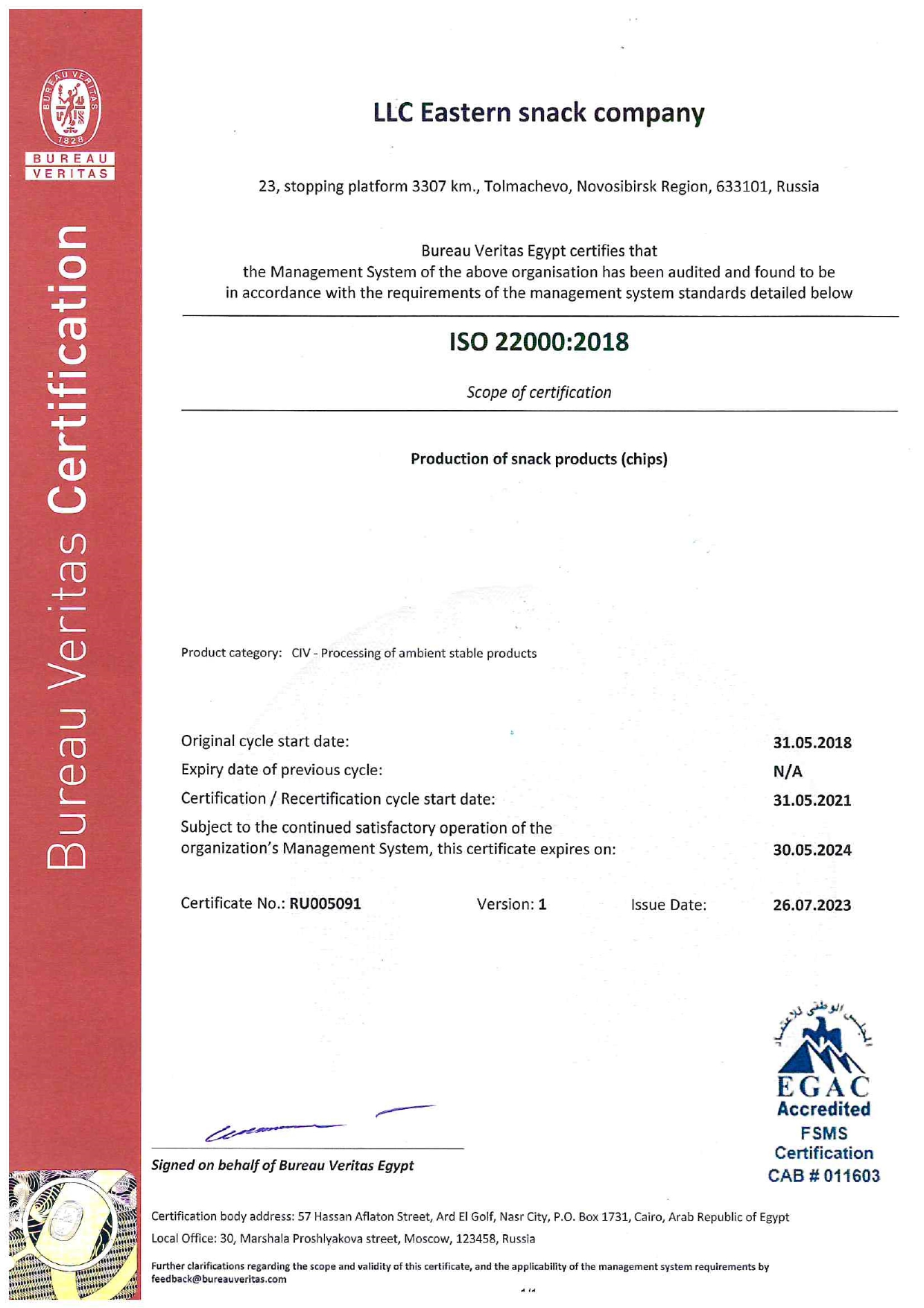 Существенная часть ассортимента ООО «Восточная Снековая Компания» приходится на СТМ для дискаунтеров и гипермаркетов.